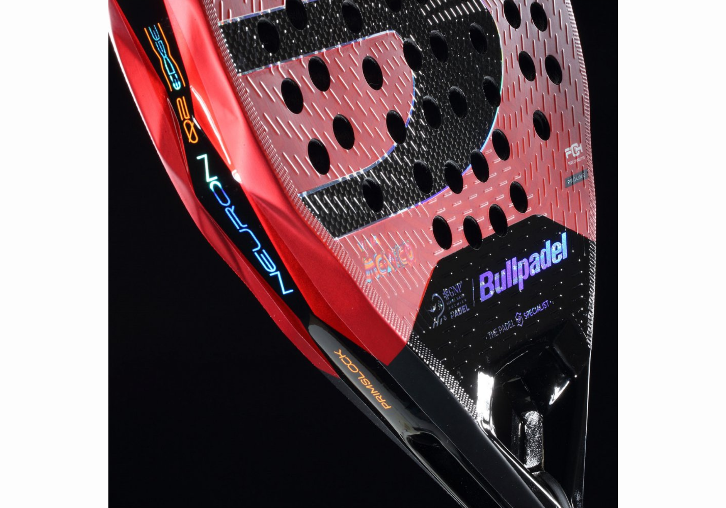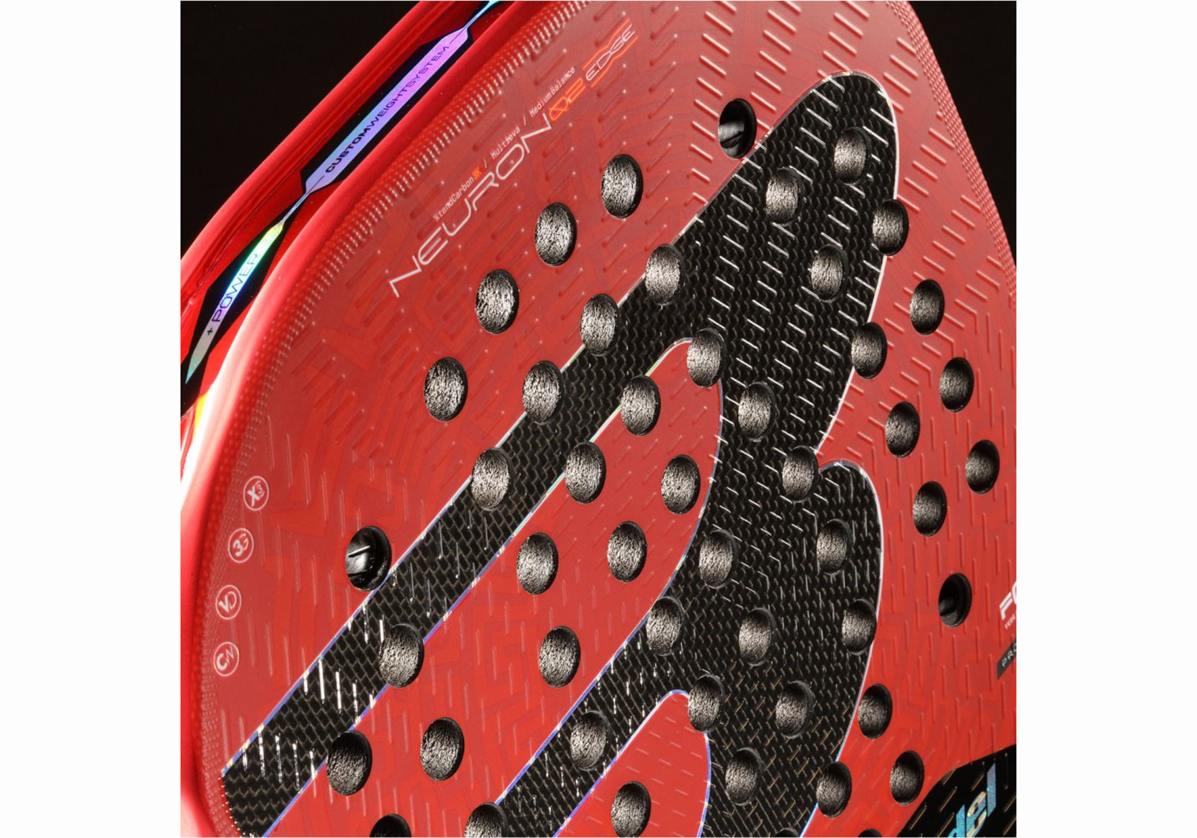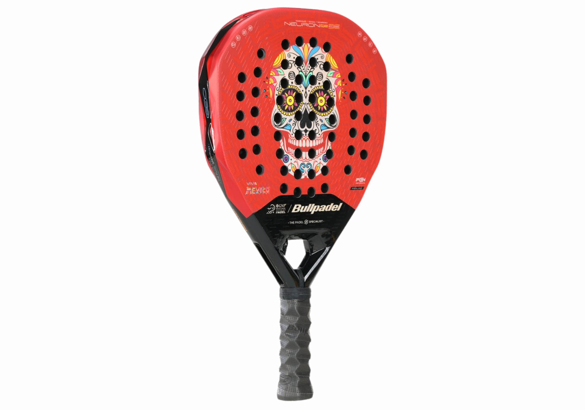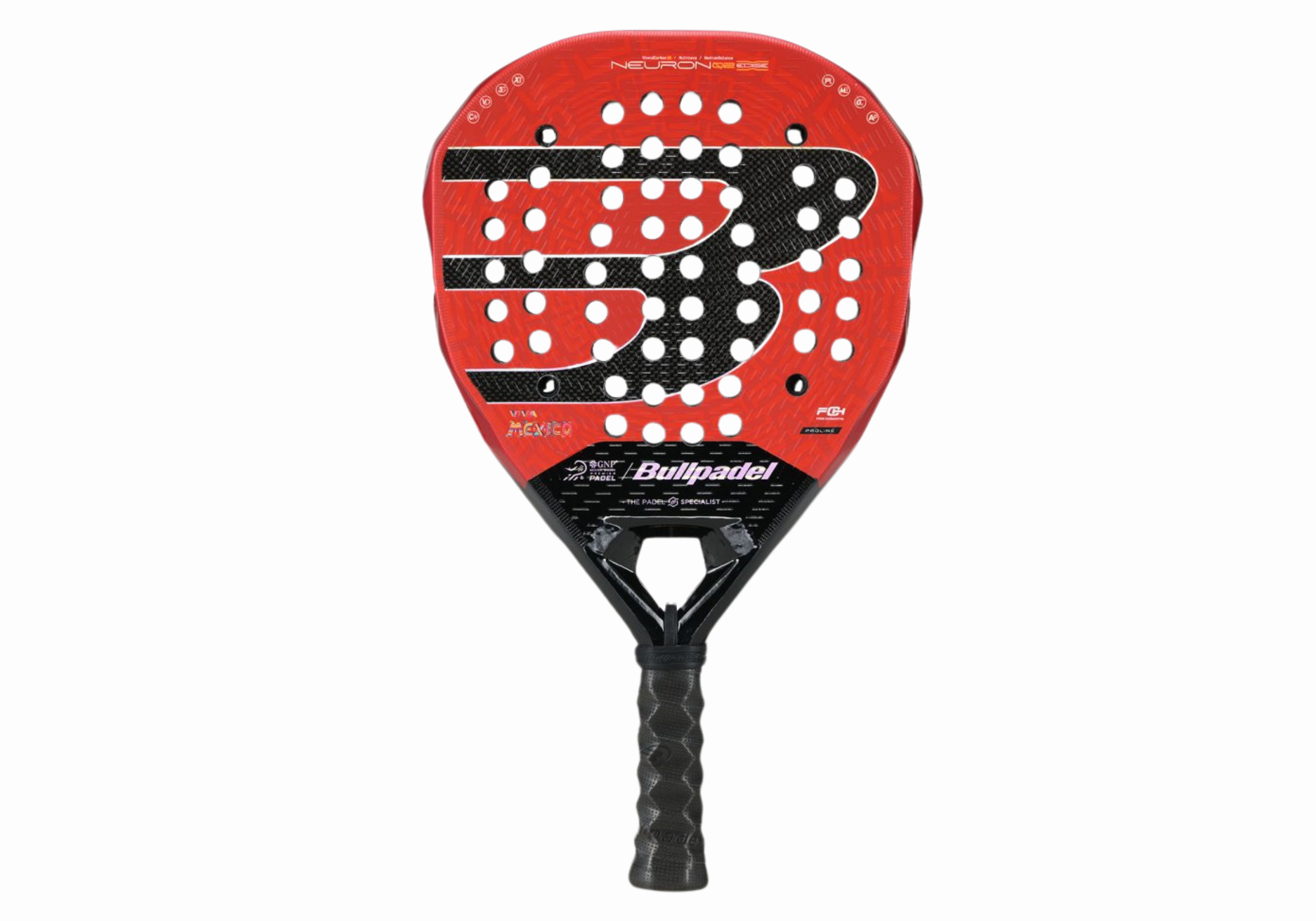 La Pala Bullpadel Neuron 02 Edge MX LTD destaca por su impactante diseño en rojo intenso, un color que simboliza la pasión, la fuerza y la energía del jugador mexicano.
