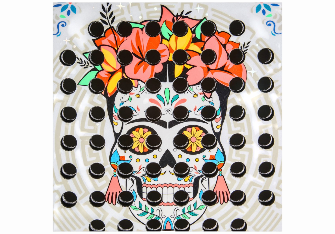 Con un diseño en blanco perlado que transmite pureza, frescura y equilibrio, la Wonder MX se distingue por una estética cuidadosamente detallada. En su centro, una calavera floral de vivos colores representa la tradición del Día de Muertos, símbolo de vida y de la fuerza interior que caracteriza a las jugadoras que compiten con pasión. Los adornos florales en tonos vibrantes enmarcan la pala, aportando dinamismo y un toque artístico que refleja la esencia mexicana.