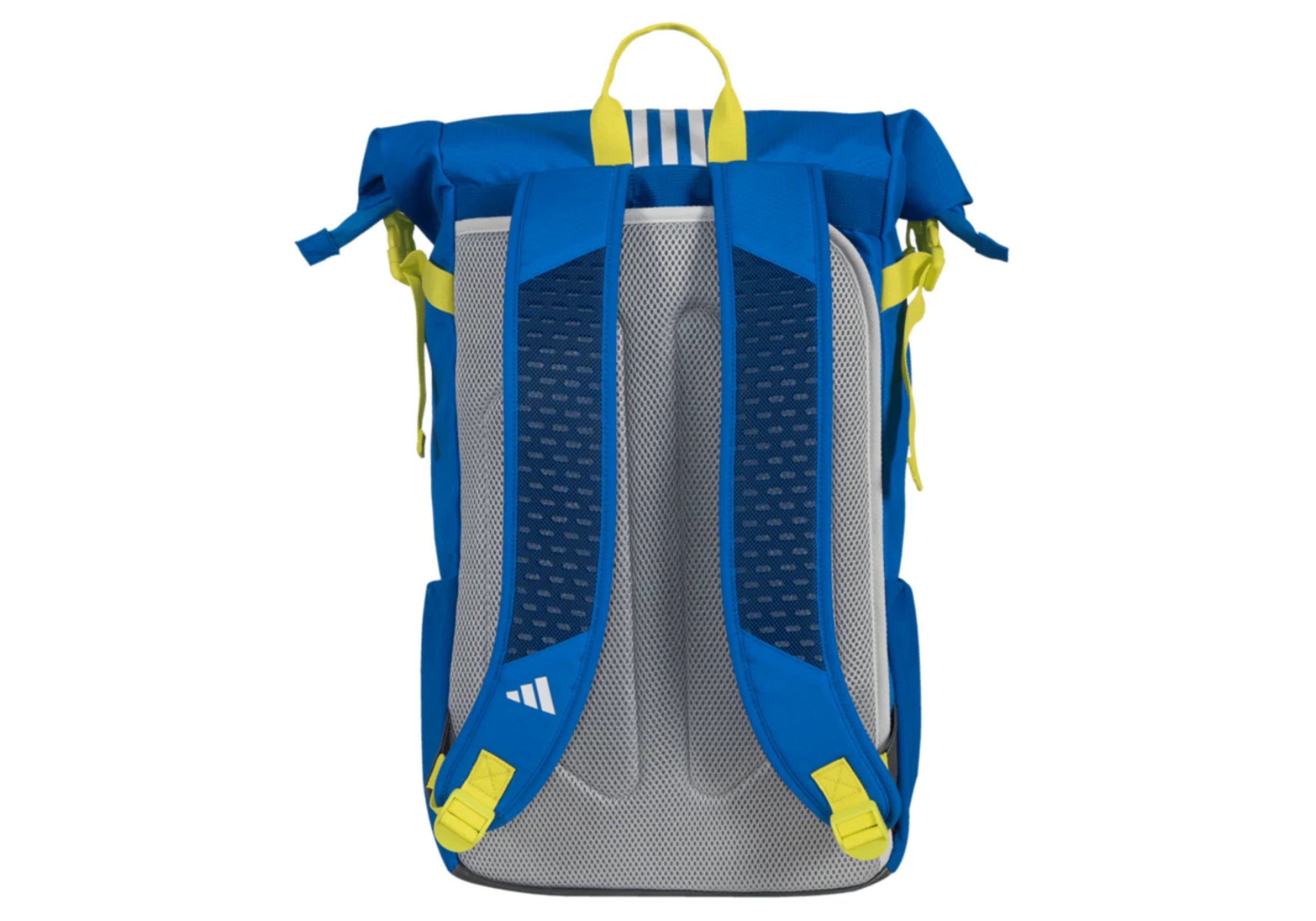 La mochila Multigame 3.3 Blue es una bolsa pensada y fabricada para reunir las mejores condiciones para encajar todo el material necesario en la pista de pádel. El compartimento grande es de volumen modificable gracias a su apertura 'Rolltop'. En él, hay una separación para encajar el portátil y un bolsillo para los objetos de menor tamaño. En los laterales incorporan dos bolsillos de malla para poder encajar botellas. Los materiales han sido elegidos para la máxima comodidad y resistencia.