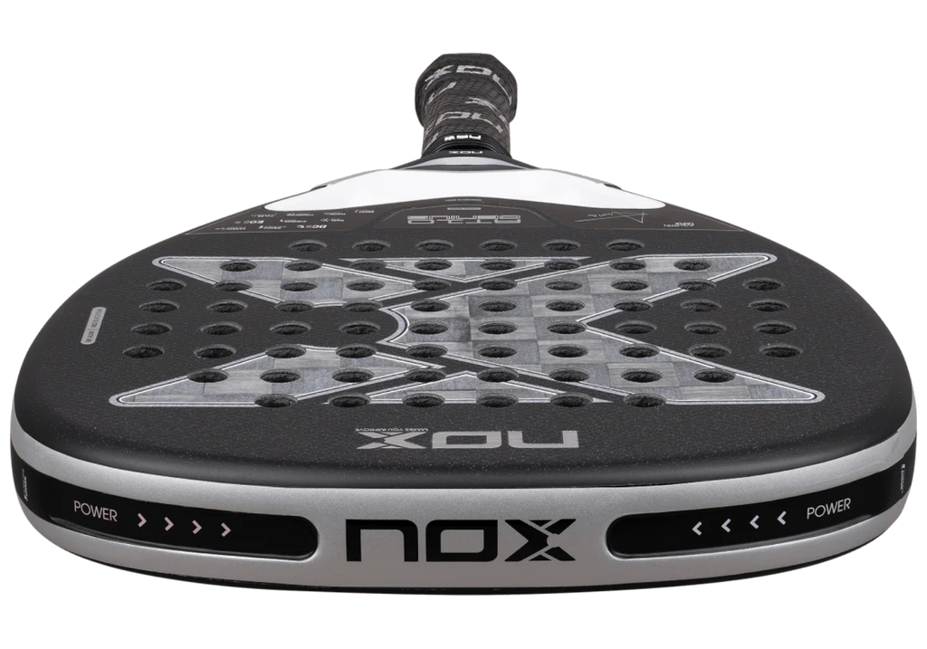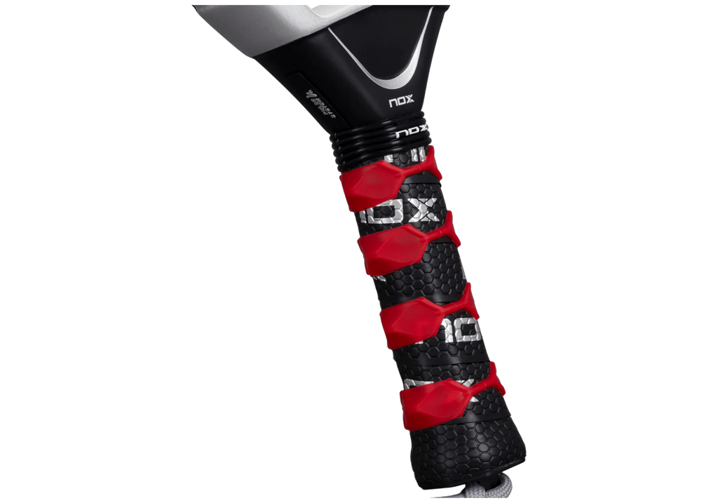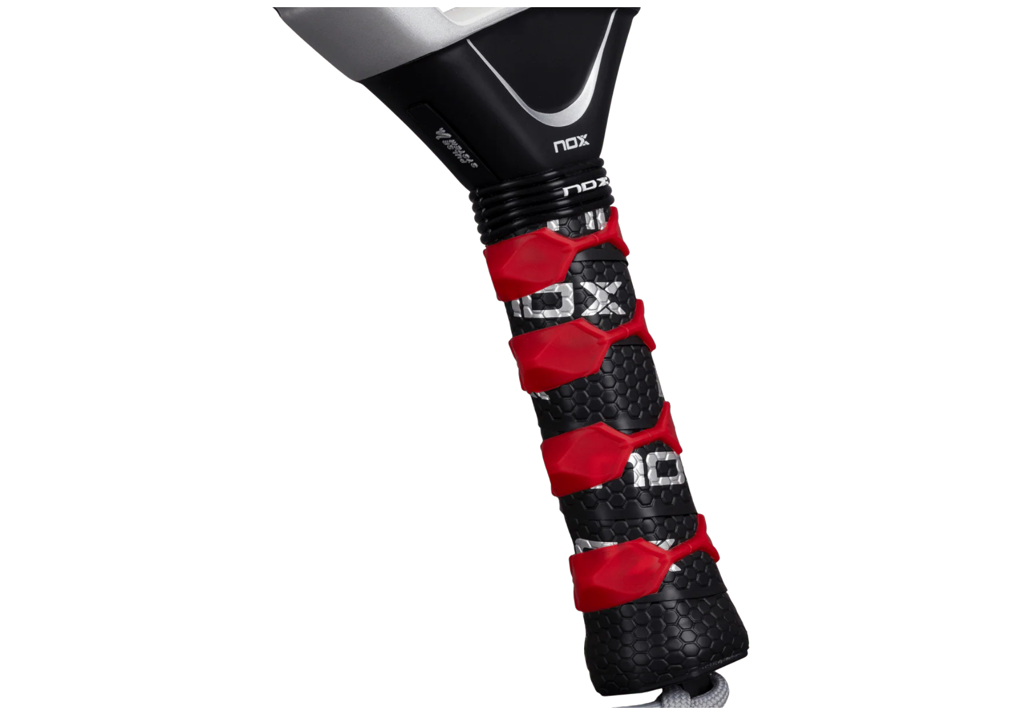 Tecnología pionera que incorpora la tecnología patentada NOX Custom Grip®, certificada por Testea Padel para el aumento de agarre y disminución de vibraciones.
